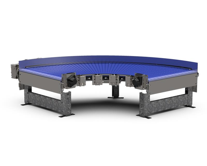 - Load capacity dependent on belt selection, product footprint, and curve angle
