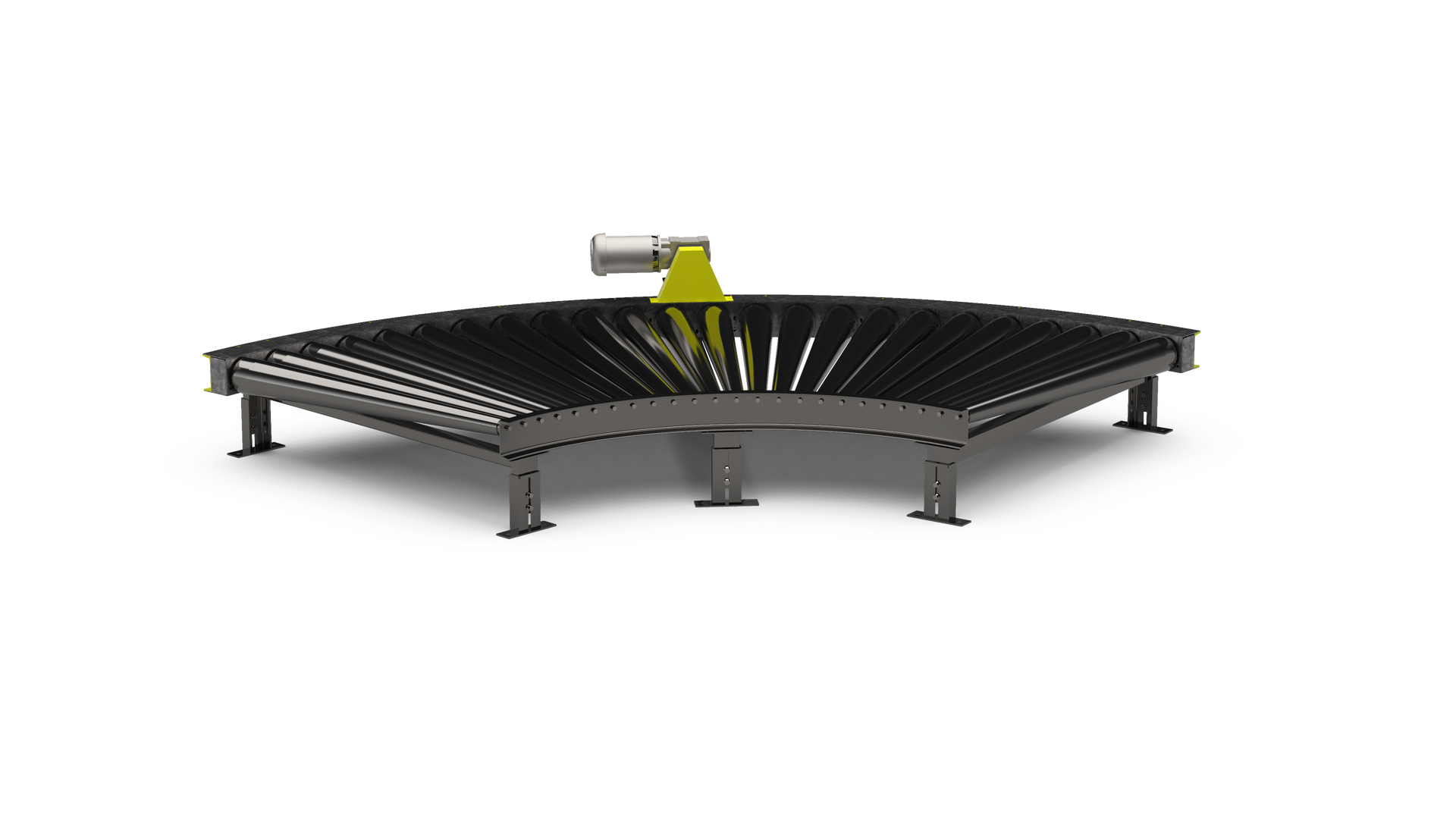 - Typical pallet loads up to 3,000 lbs, dependent on roller series, curve angle, pallet condition, and accumulation strategy